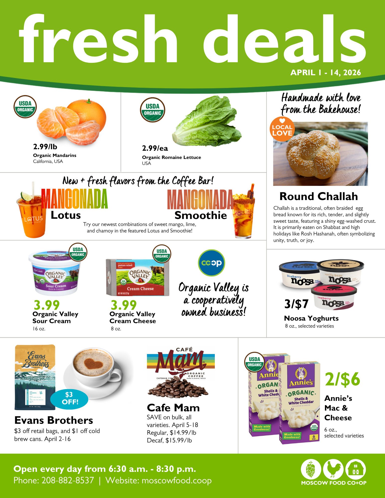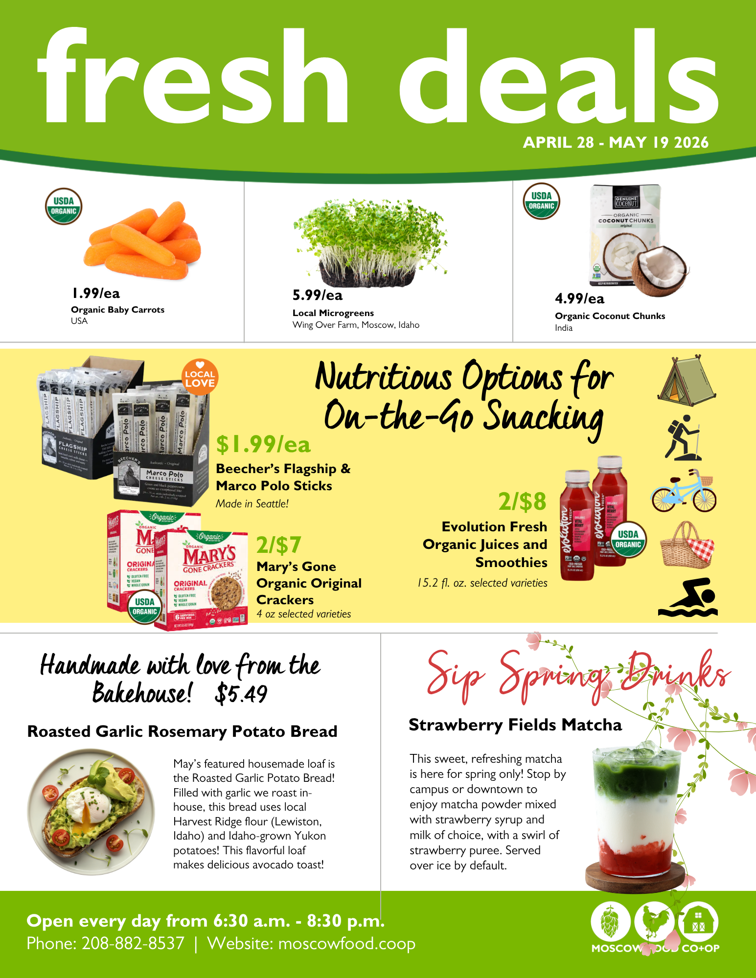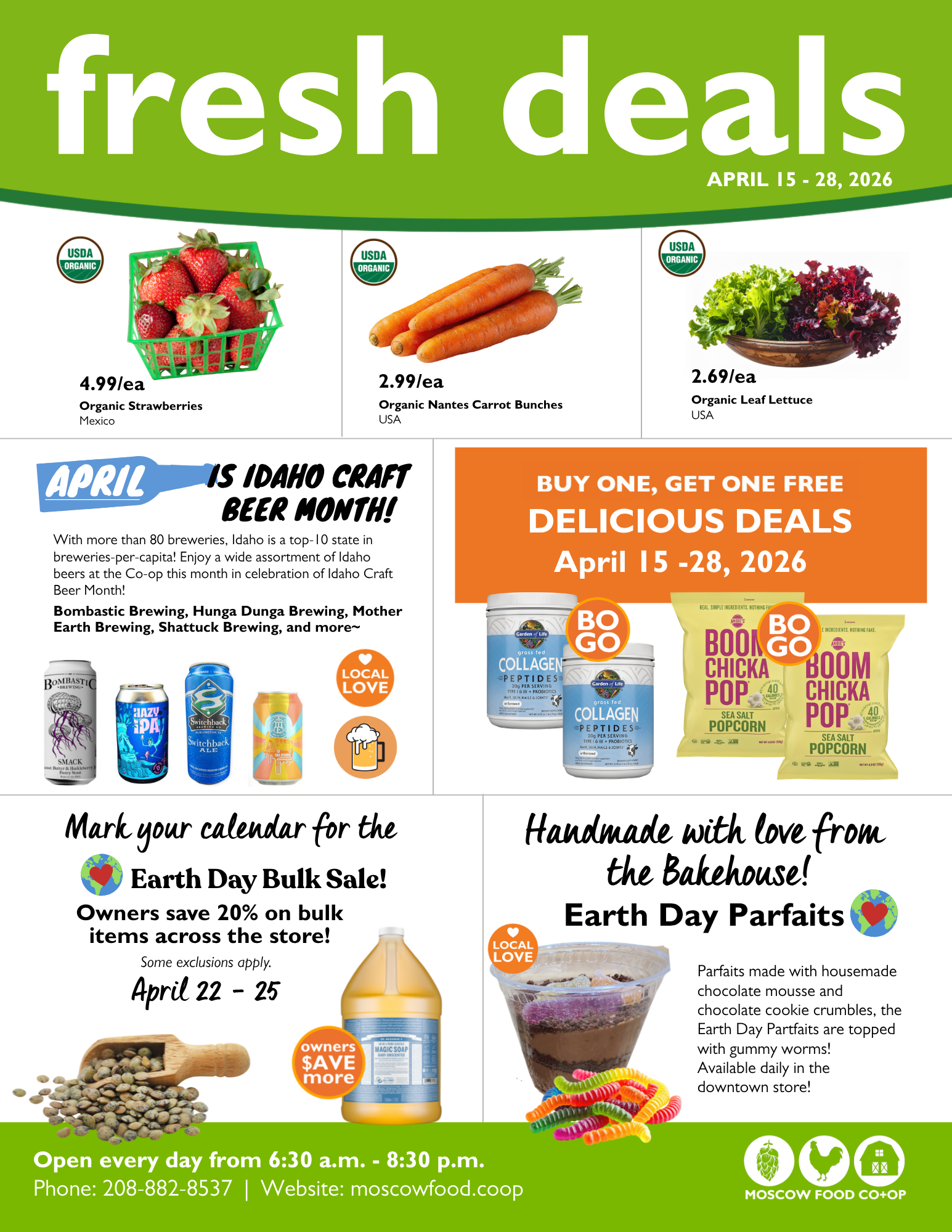 Every other Wednesday we roll out new deals, offering deep discounts on select items in our Fresh Departments! This often includes seasonal produce, Co-op-made baked goods and more.
