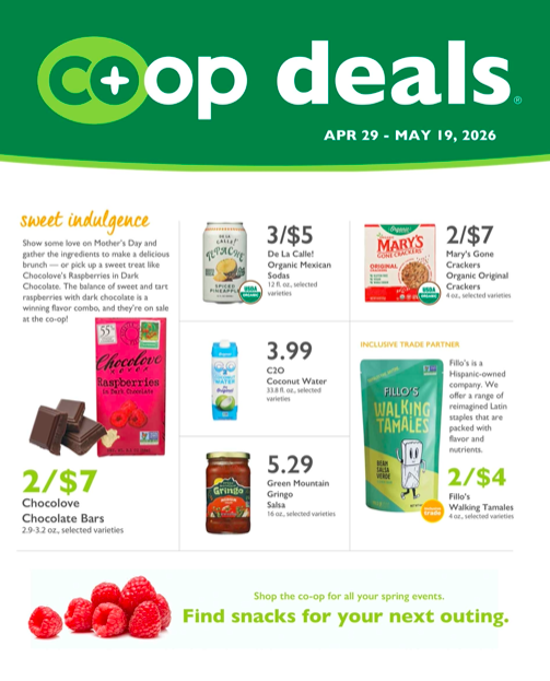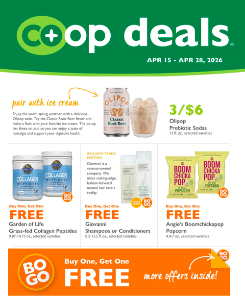 The Co-op Deals Flyer is your bi-weekly savings guide at the Co-op, offering great deals on some of our most popular grocery products, with recipes and tips to help you put it all together!