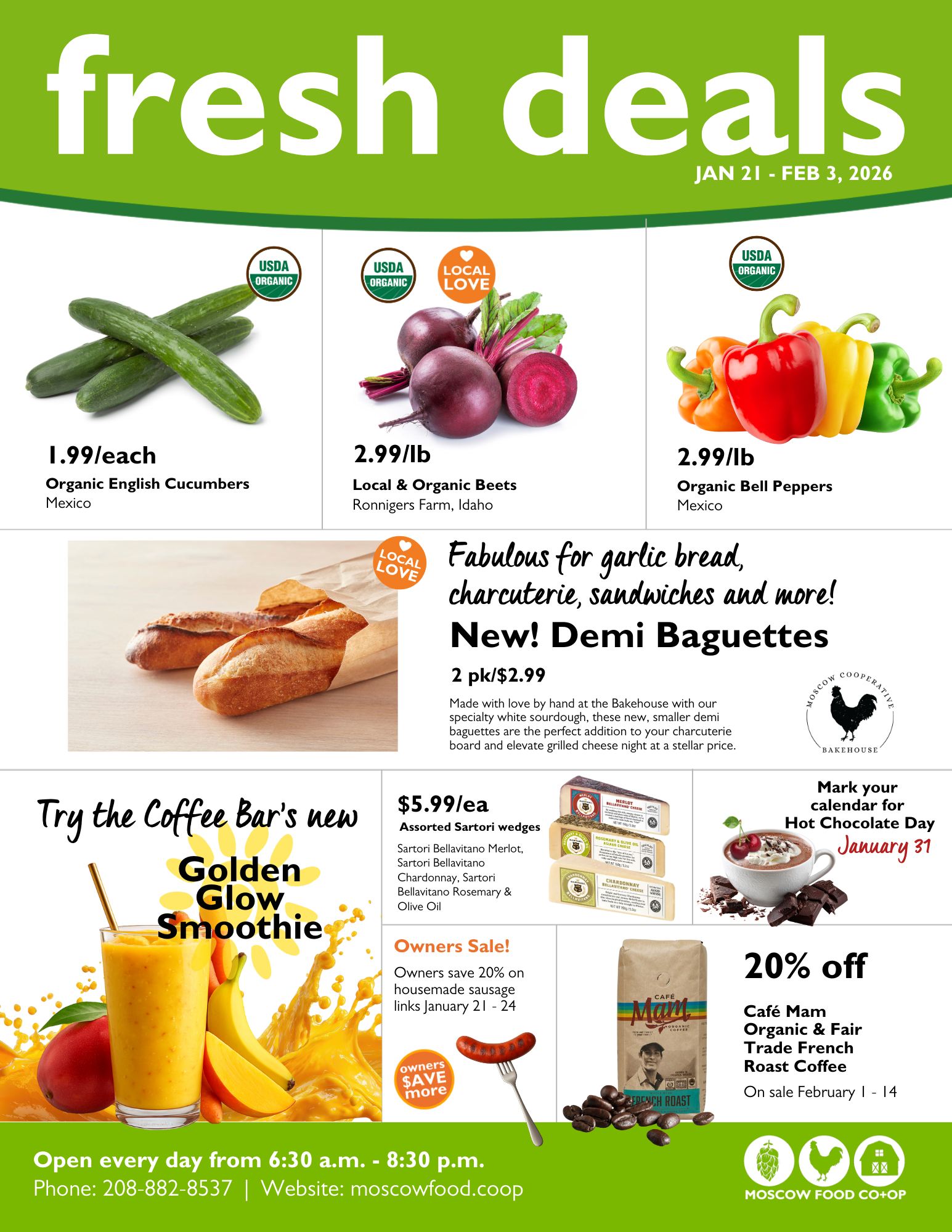 Every other Wednesday we roll out new deals, offering deep discounts on select items in our Fresh Departments! This often includes seasonal produce, Co-op-made baked goods and more.